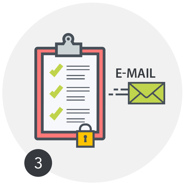 Die Daten werden an unsere Suchtechnologie übergeben und dann können Sie in Ihrem Benutzerkonto auf das Ergebnis zugreifen.